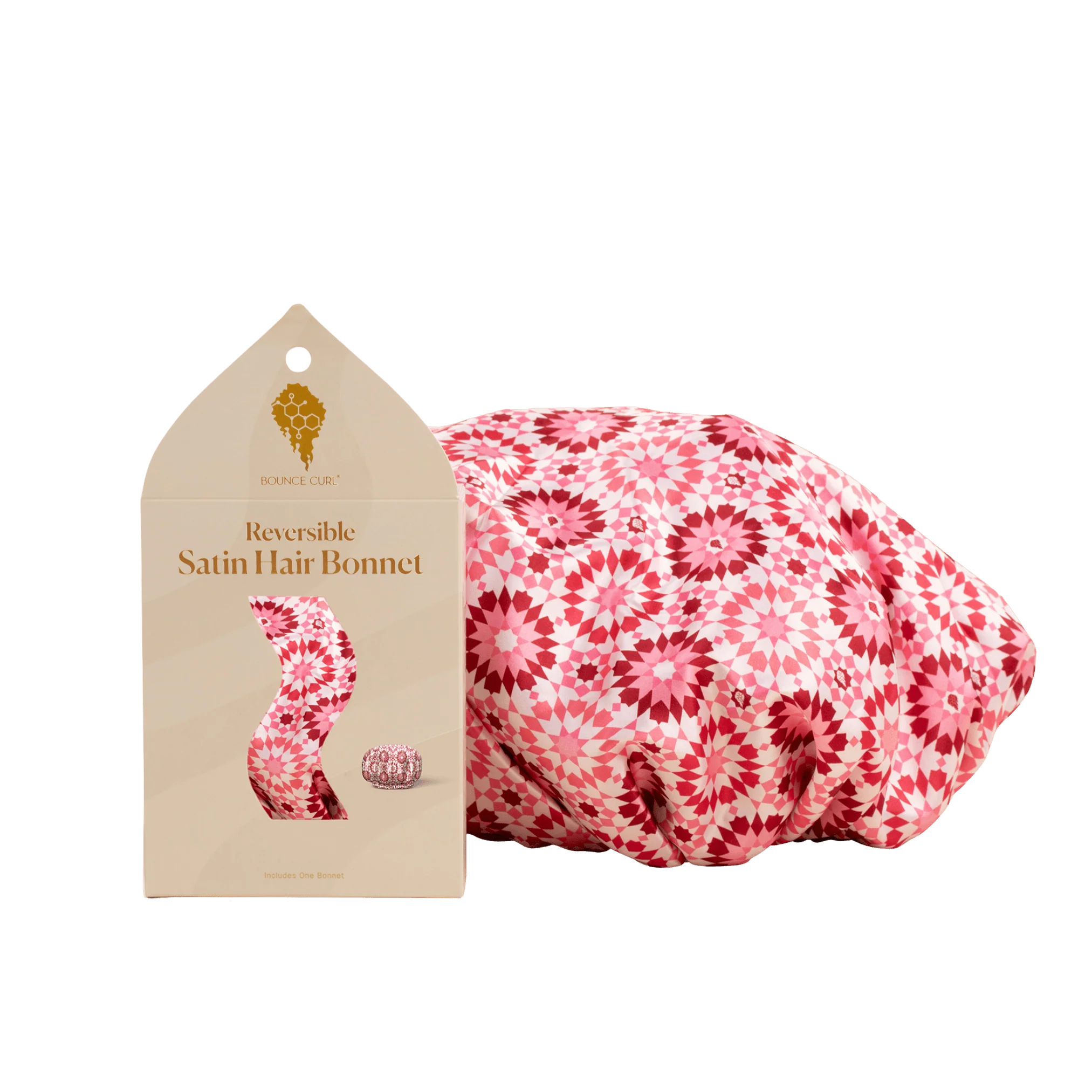 Bounce Curl’s Reversible Satin Hair Bonnet is designed to help protect curls overnight by reducing friction and minimizing frizz. Made with a silky-soft vegan satin and finished with an adjustable band for a secure, comfortable fit, it helps preserve curl shape while you sleep and supports easier refreshes in the morning for wavy, curly, and coily hair.
